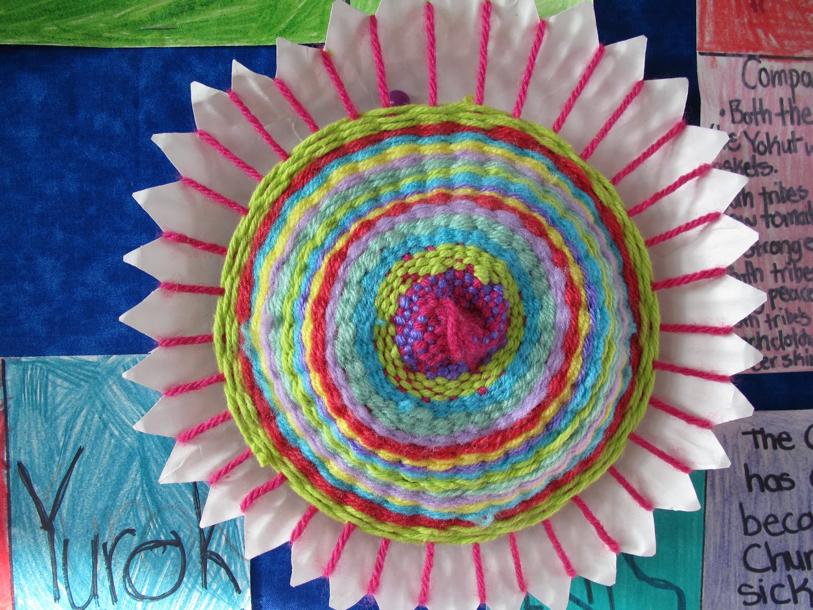 To get the plates ready, I first cut out an odd number of small slits around the outside of the plate. Of course I completely forgot to take pictures along the way, but if you are interested in seeing the process from the beginning let me know and I will recreate it and take pictures for you! But here are pictures of some of their wonderful weavings!
